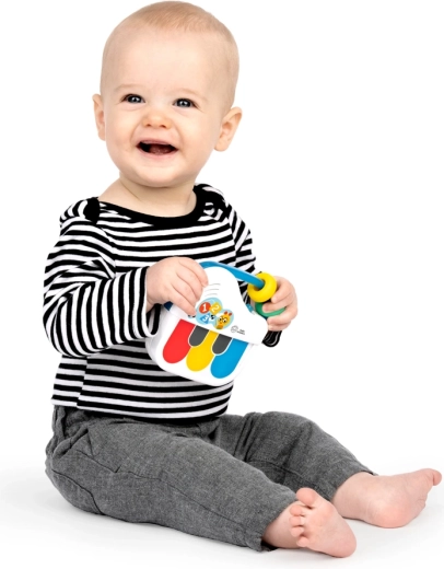 Baby Einstein Petit Piano to sprytna muzyczna zabawka, która inspiruje maluchy do odkrywania dźwięków, rytmu i kolorów. Dzięki czułej technologii Magic Touch dźwięki uruchamia nawet najdelikatniejsze muśnięcie palcem. Zintegrowany gryzak-koraliki i kolorowe klawisze stymulują wzrok, słuch i dotyk, jednocześnie rozwijając koordynację ręka–oko.