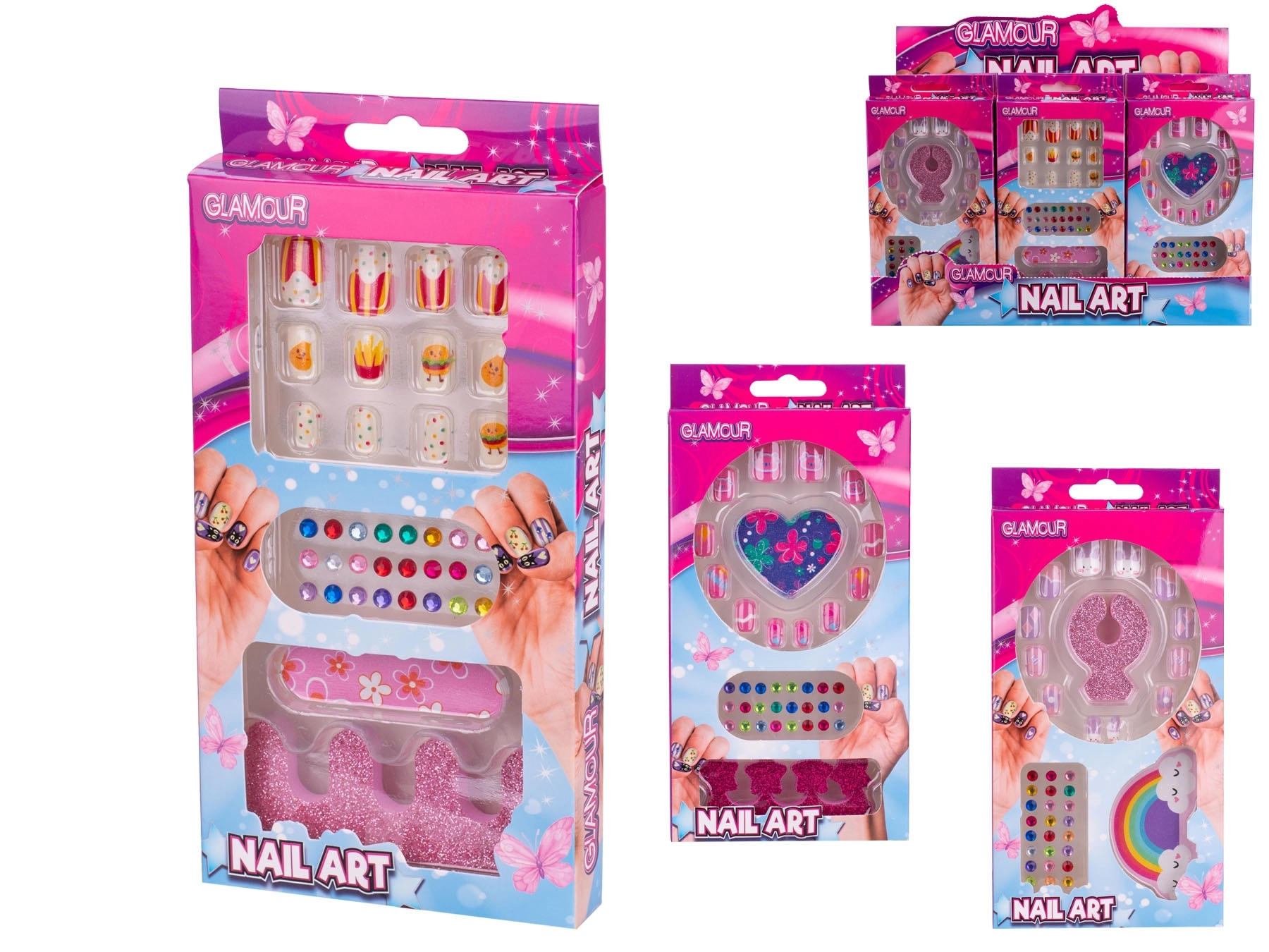 Zestaw jest dostępny w trzech radosnych wzorach – z motywami jedzenia, serc i tęczy. Dzięki łatwej aplikacji bez użycia lakieru dzieci mogą bezpiecznie wypróbowywać różne style i rozwijać swoją wyobraźnię. Kompaktowe opakowanie łatwo przechowywać i przenosić, dlatego idealnie sprawdzi się w podróży, na wizytach i dziecięcych przyjęciach.