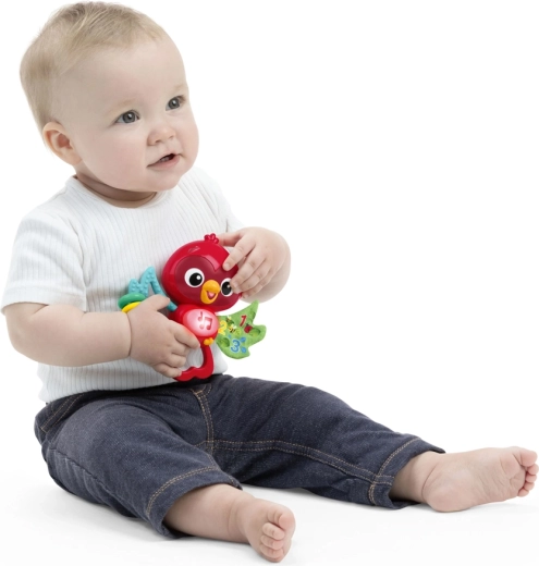 Środkowy przycisk aktywuje światło oraz ponad 10 klasycznych melodii i odgłosów ptaków – idealne do nauki przyczynowo–skutkowej i ukojenia w podróży.