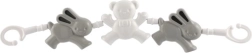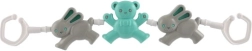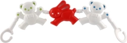 Łańcuszek do wózka z misiami i króliczkiem to idealny dodatek, który zajmie Twoje dziecko. Dzięki różnorodnym kształtom i wyrazistym kolorom pomaga rozwijać małą motorykę oraz zmysły malucha. Proste mocowanie za pomocą haczyków na obu końcach umożliwia szybkie i łatwe przymocowanie do wózka lub łóżeczka.