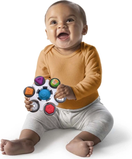 Ściskanie, obracanie, klikacze, przesuwanie i centralny spinner utrzymują uwagę dziecka oraz rozwijają rozumienie przyczyny i skutku, a także małą motorykę.