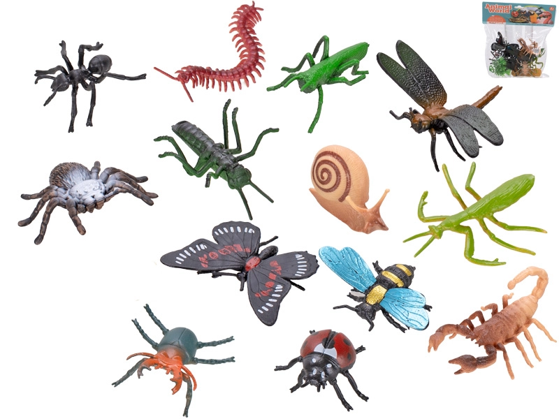 Odkryj świat małych stworzeń z zabawnym zestawem figurek owadów! Trzynaście szczegółowo wykonanych elementów w skali 3,5–7 cm jest idealnych dla małych dziecięcych rąk. Realistyczne wykonanie, wytrzymały plastik i praktyczne opakowanie w woreczku gwarantują mnóstwo zabawy i nauki dla dzieci od 3 lat.