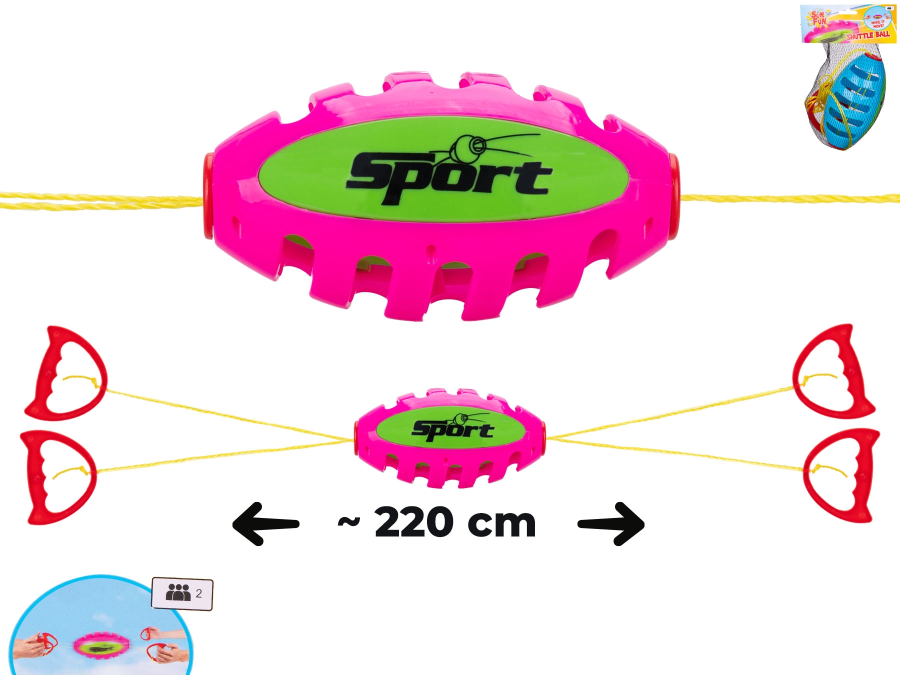 Sun Fun speedball to świetny wybór dla rodzin, przyjaciół i grup szkolnych. Gracze naprzemiennym rozciąganiem i ściąganiem sznurków posyłają piłkę tam i z powrotem, trenując sprawność ruchową, spostrzegawczość i współpracę zespołową. Dzięki kompaktowym wymiarom i niewielkiej wadze gra łatwo towarzyszy w podróżach i na wakacjach.