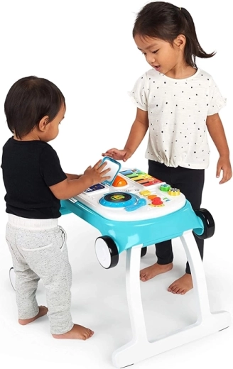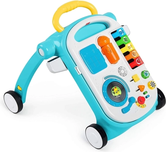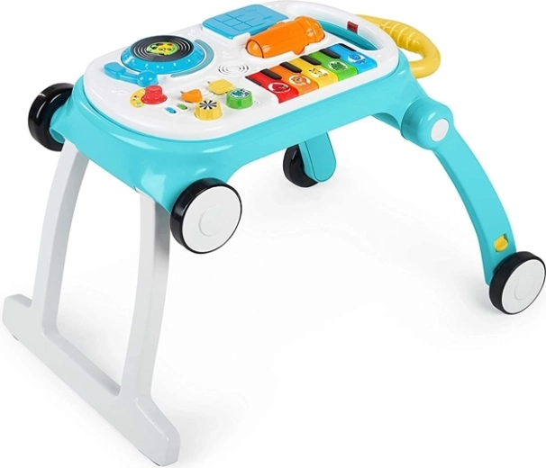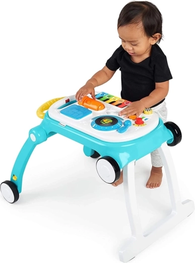 Baby Einstein Musical Mix ‘N Roll 4w1 to sprytne rozwiązanie łączące chodzik, panel aktywności, muzyczny oraz kreatywny stolik w jednym. Dzieci odkrywają kolory, zwierzęta i rytm dzięki ponad 100 melodiom i frazom w trzech językach, jednocześnie ćwicząc równowagę i pewność podczas chodzenia.