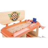 Ta drewniana zabawka jest idealna dla małych miłośników motoryzacji. Warsztat i stacja benzynowa zapewniają dwupoziomową zabawę i oferują jeszcze więcej przestrzeni do odkrywania. Dzieci pokochają realistyczne elementy, w tym rampę i parking zabezpieczony szlabanem.