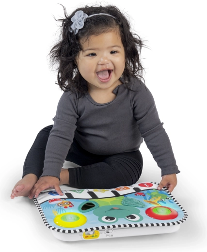Odkryj zabawną i edukacyjną zabawkę dla najmłodszych – miękką muzyczną matę 2w1, którą łatwo przymocujesz do łóżeczka lub położysz na podłodze do zabawy na brzuszku i w pozycji siedzącej. Światełka, muzyka i dźwięki motywują dzieci do kopania i naciskania, a jednocześnie uczą kolorów, liczb i kształtów w 3 językach (EN/FR/ES). 3 tryby zabawy, w tym Melodie i Pianino, wspierają rozwój zmysłów, motoryki oraz miłość do muzyki.