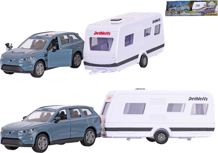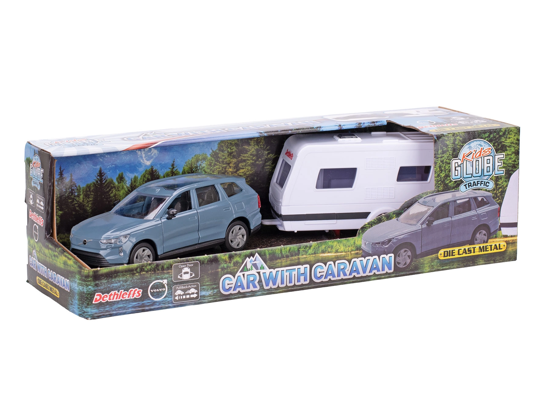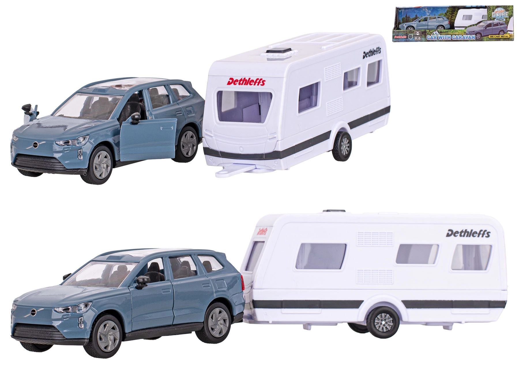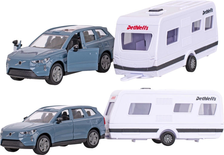 Odkryj wierny model Volvo EX90 z przyczepą Dethleffs, który zachwyca dopracowanymi detalami i wysoką jakością wykonania. Metalowe nadwozie z plastikowymi elementami zapewnia długą trwałość, a mechanizm wstecznego naciągu (pull-back) gwarantuje dynamiczną i wciągającą jazdę. Odłączana przyczepa poszerza możliwości zabawy i wspiera kreatywność dzieci.