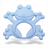 Niebieska żabka z centralnym uchwytem wspiera motorykę i przynosi ulgę wrażliwym dziąsłom.