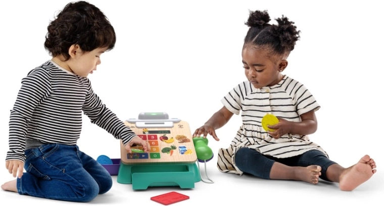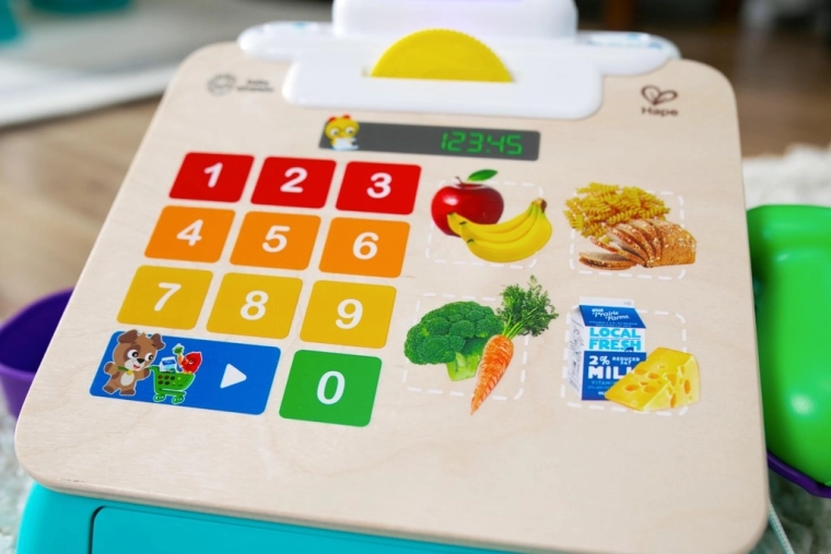 - Zabawa w odgrywanie ról: realistyczne dźwięki kasy, piknięcie skanera i wrzucanie monet.