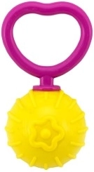 Grzechotka wykonana jest z lekkiego plastiku, dobrze leży w dłoni i łatwo się nią manipuluje nawet przez najmłodsze dzieci. Idealna do codziennej zabawy w domu i w podróży.
