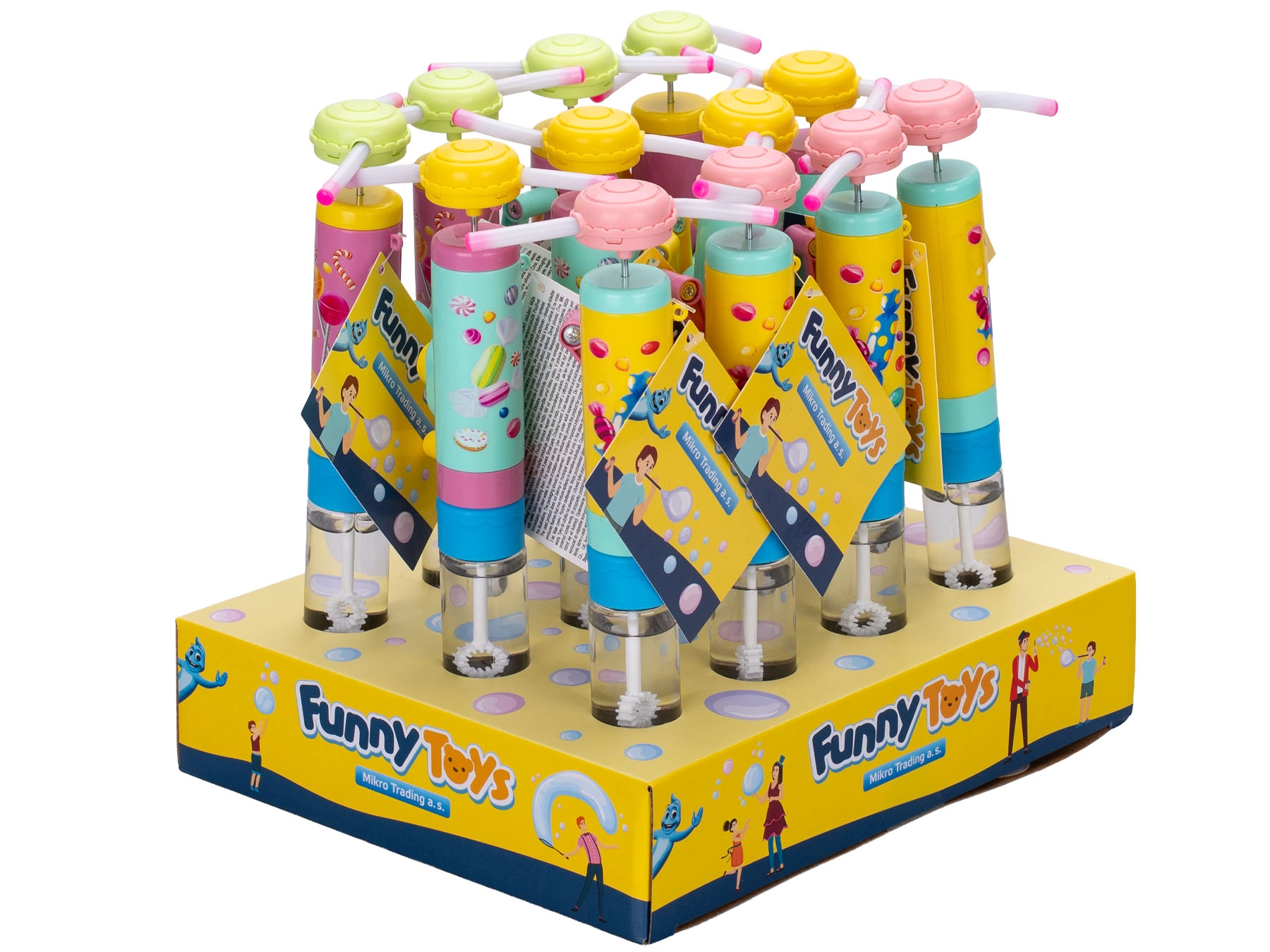 Zabawka dostępna jest w trzech żywych kolorach – niebieskim, różowym i żółtym. Wykonana z wytrzymałego plastiku, zasilana 2× bateriami LR41, które są dołączone do zestawu, więc zabawa może zacząć się od razu.