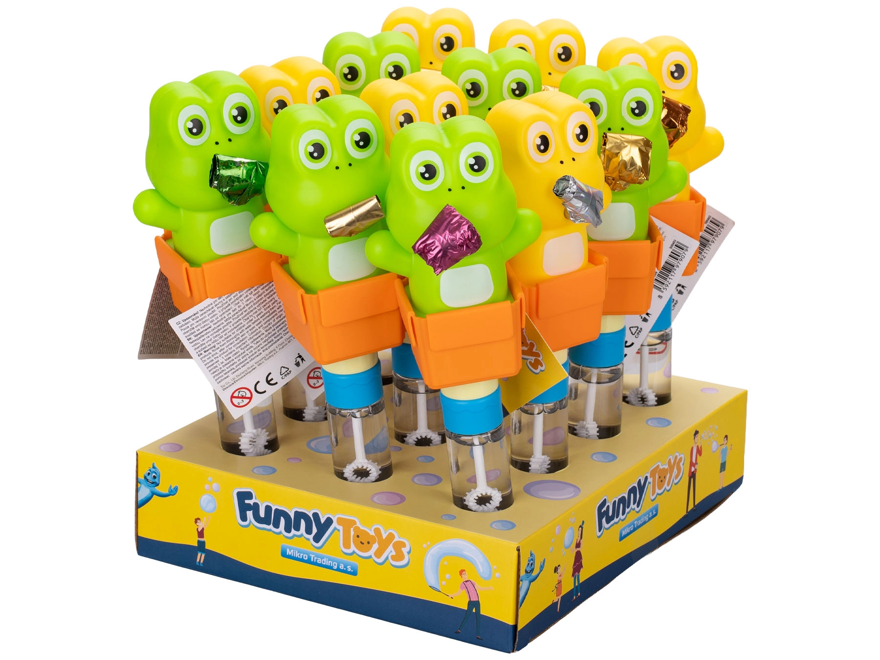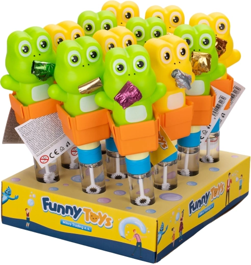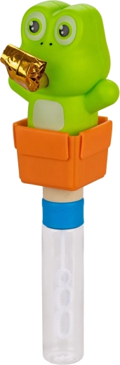 Zabawka dla dzieci od 3 lat, która łączy klasyczny płyn do baniek i imprezową trąbkę dla podwójnej porcji zabawy. Wesoła żabka tworzy mnóstwo baniek, wydaje typowe dźwięki trąbki i jest idealna na przyjęcia i imprezy dziecięce. Dostępna w dwóch kolorach i wykonana z wytrzymałego plastiku dla bezpiecznej i wygodnej zabawy.