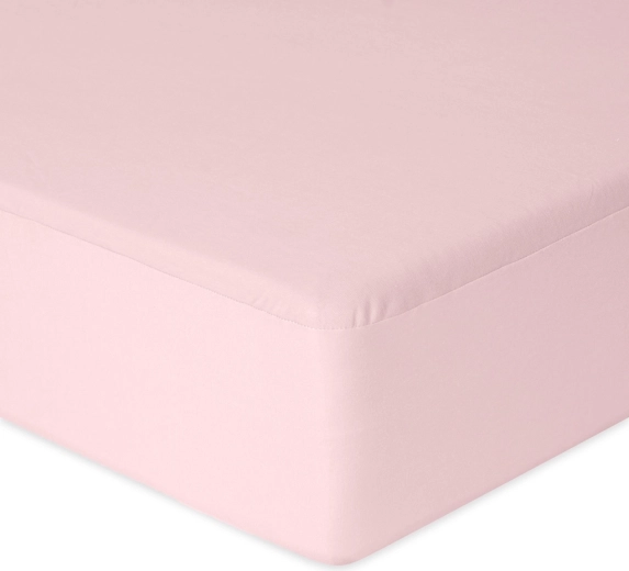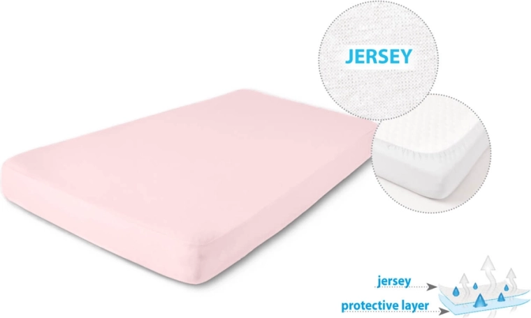 Praktyczne i miękkie prześcieradło do łóżeczka o wymiarach 60 × 120 cm w delikatnym różowym kolorze. Dzięki innowacyjnemu tunelowi z gumką prześcieradło pewnie trzyma się materaca i nie zsuwa się, a nieprzemakalna dolna warstwa chroni materac przed wilgocią. Wierzchnia strona z delikatnej 100% bawełny jest łagodna dla wrażliwej dziecięcej skóry.
