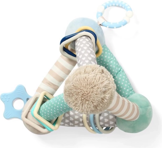 Trójkątny kształt z wyściełanymi rogami i kółkami jest idealny do pierwszego chwytu, potrząsania i przekładania z rączki do rączki.