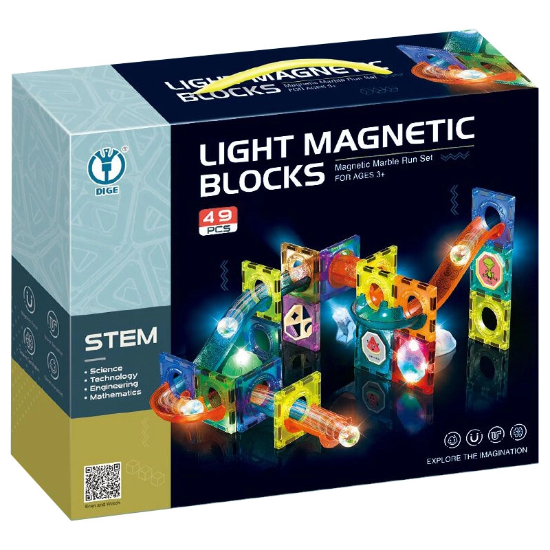 Odkryj nieskończone możliwości tworzenia z zestawem, który łączy magnetyczne klocki, przezroczyste elementy i świecące kulki. Magnetyczny świecący tor kulkowy 49 szt. rozwija kreatywność, myślenie logiczne i motorykę małą, a efekty świetlne nadają każdej konstrukcji zachwycający efekt.