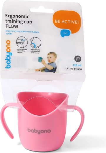 Praktyczny kubek treningowy BabyOno pomaga dzieciom od 6 miesięcy uczyć się pić z otwartego naczynia samodzielnie i bezpiecznie. Dzięki ergonomicznemu kształtowi, podwójnym uszkom dla pewnego chwytu i pochylonemu brzegowi dziecko łatwo kontroluje przepływ płynu i tempo picia. Wykonany z bezpiecznego materiału bez BPA, jest lekki, trwały i można go myć w zmywarce.
