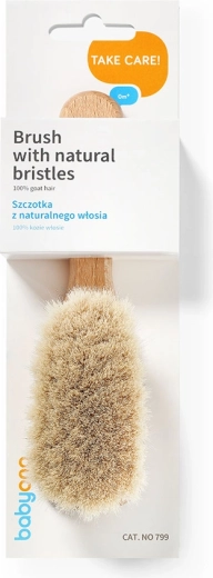 Miękkie, gęste włosie delikatnie rozczesuje cienkie włoski, koi i przyjemnie masuje skórę głowy oraz ciałko niemowlęcia.