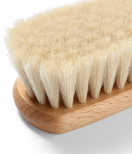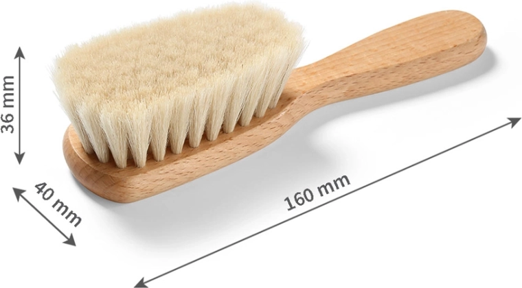 Ta naturalna szczotka została zaprojektowana do najdelikatniejszej pielęgnacji noworodków i niemowląt. Gęste i miękkie włosie z koziego futra jest wyjątkowo łagodne dla wrażliwej skóry, zmniejsza ryzyko podrażnień i pomaga ukoić maluszka przyjemnym masażem. Korpus z certyfikowanego drewna bukowego zapewnia trwałość i długą żywotność, zachowując w 100% naturalny charakter produktu.