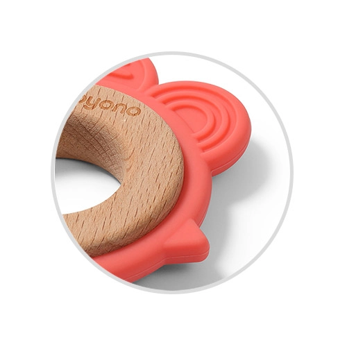 Połączenie certyfikowanego drewna bukowego i bezpiecznego silikonu przeznaczonego do kontaktu z żywnością zapewnia zróżnicowane tekstury dla stymulacji sensorycznej.