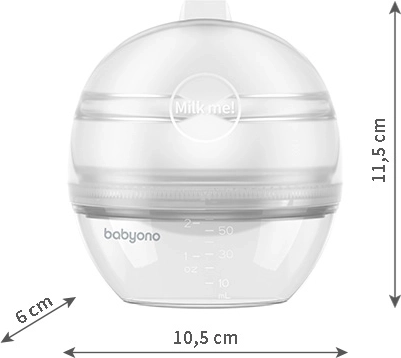 Zaokrąglony kształt z delikatnego silikonu doskonale dopasowuje się do piersi i chroni skórę przed podrażnieniami. Higieniczna i bezpieczna konstrukcja bez BPA składa się tylko z trzech części, które szybko rozłożysz i wyczyścisz. Praktyczna podziałka miarowa ułatwi kontrolę zebranej ilości mleka (pojemność 60 ml).