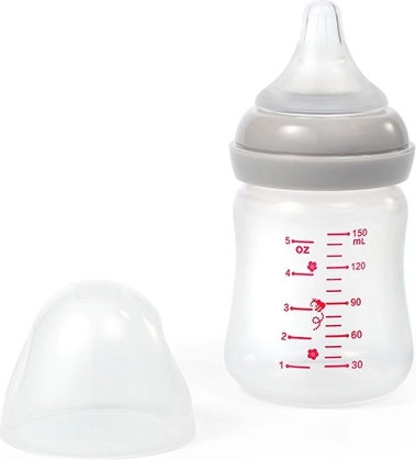 Miękka silikonowa nakładka chroni wrażliwą skórę i zapewnia szczelność. Stabilizująca podstawa zapobiega przewracaniu się i rozlaniu mleka.