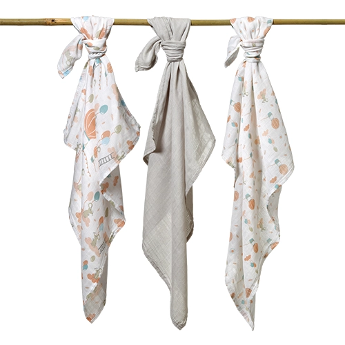Praktyczny zestaw 3 sztuk łączy dwie pieluszki z subtelnym pastelowym motywem zwierzątek i baloników oraz jedną gładką w szarym odcieniu, dzięki czemu łatwo komponuje się z wyprawką. Pieluszki są lekkie, szybko schną i są łatwe w pielęgnacji. Aby zachować miękkość, stosuj delikatne pranie zgodnie z zaleceniami producenta.