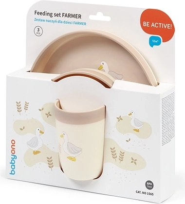 Zestaw obiadowy Babyono Farmer został zaprojektowany z myślą o pierwszych krokach w samodzielnym jedzeniu. Lekki, a jednocześnie wytrzymały plastik PP sprawdza się w codziennym użytkowaniu, a antypoślizgowe dna talerza, miski i kubeczka zwiększają stabilność i zmniejszają ryzyko przewrócenia. Zaokrąglone krawędzie są przyjazne dla wrażliwych dziecięcych warg i dziąseł.