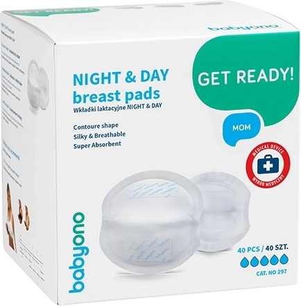 Praktyczne wkładki laktacyjne BabyOno Night & Day zapewniają niezawodną ochronę przed przeciekaniem zarówno w dzień, jak i w nocy. Mają superchłonny rdzeń z żelowym absorbentem, jedwabistą, miękką i oddychającą powierzchnię delikatną dla wrażliwej skóry oraz nieprzepuszczalną warstwę zewnętrzną z dwoma paskami samoprzylepnymi dla pewnego mocowania. Każda wkładka jest pakowana oddzielnie dla maksymalnej higieny.