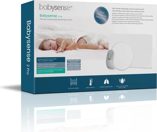 Monitor oddechu Babysense 2 Pro nieprzerwanie śledzi ruchy oddechowe dziecka przez materac za pomocą pasywnych mat sensorycznych. Jeśli oddech nie jest wykrywany przez ponad 20 sekund lub częstotliwość oddechu spadnie poniżej 10 oddechów na minutę, włącza się wyraźny alarm akustyczny i wizualny. Jednostka kontrolna na bieżąco sygnalizuje aktywność oddechową, dzięki czemu zawsze masz sytuację pod kontrolą.