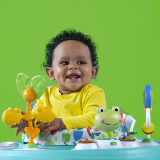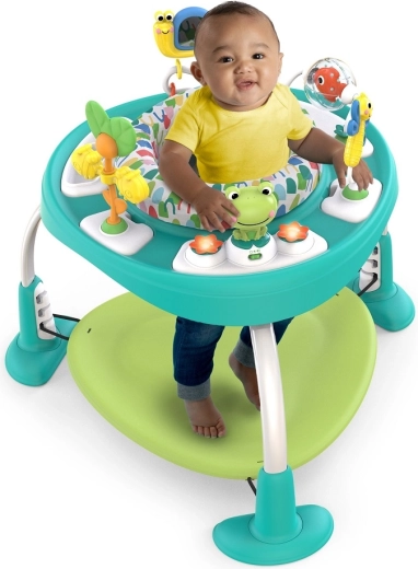 Odkryj sprytne rozwiązanie do codziennej zabawy i rozwoju – aktywne centrum BRIGHT STARTS Bounce Bounce Baby rośnie wraz z Twoim dzieckiem. Najpierw służy jako bezpieczny skoczek z obrotowym siedziskiem 360° i elastyczną podkładką do wygodnego odbijania. Później łatwo wyjmiesz podkładkę i siedzisko, tworząc stojący stolik do zabawy z praktyczną siatką na zabawki.