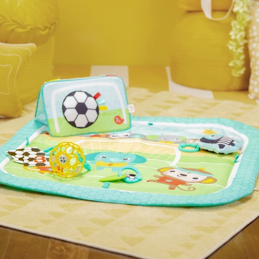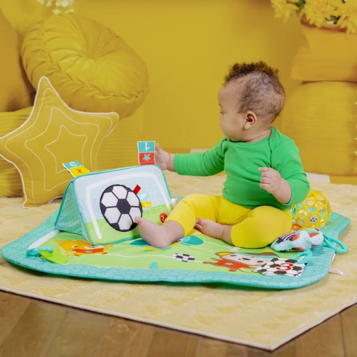 Przygotuj się na zabawę od pierwszych dni z matą edukacyjną BRIGHT STARTS Oball Grip & Kick. Oferuje 4 sposoby zabawy – na brzuszku, na leżąco, na siedząco oraz w podróży – oraz interaktywną podkładkę ze światłami, melodiami i dźwiękami (30+), które nagradzają każdy dotyk i kopnięcie. Miękka, wyściełana powierzchnia i kolorowe zawieszane zabawki wspierają rozwój sensoryczny oraz małą i dużą motorykę.
