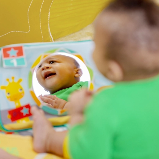 Na brzuszku, na leżąco, na siedząco i w podróży – pałąki i zabawki łatwo przearanżujesz zgodnie z wiekiem i potrzebami maluszka.