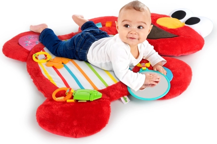 Mięciutka mata edukacyjna Tummy-Time ELMO przenosi SESAME STREET prosto do Twojego domu. Zapewnia delikatne wyściełanie, wsparcie podczas leżenia na brzuszku oraz angażujące bodźce sensoryczne dzięki różnym fakturom, wstążkom i 3 odpinanym zabawkom, w tym bezpiecznemu lusterku. Odpowiednia od urodzenia i świetna do rozwoju małej motoryki.
