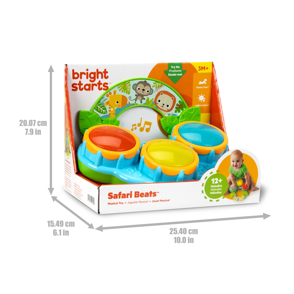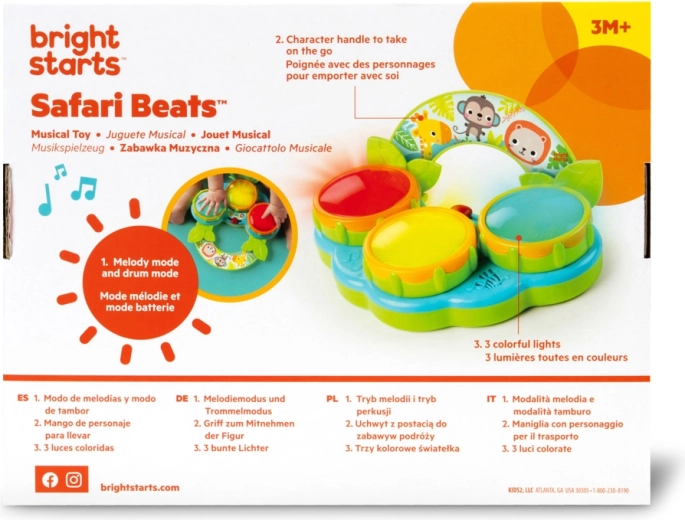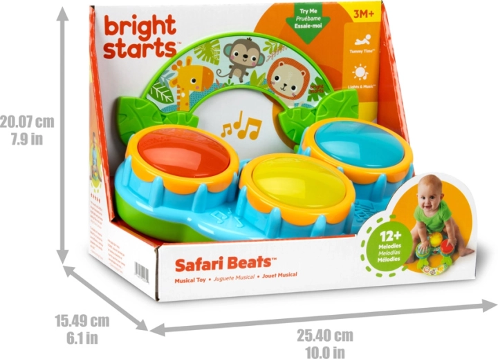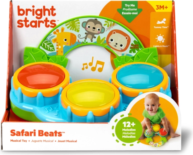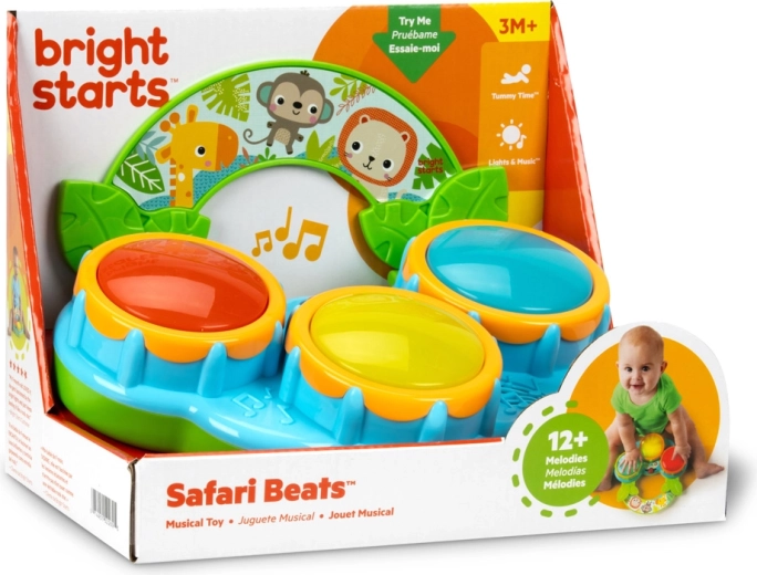 Rozpocznij pierwszy muzyczny koncert swojego maluszka z zabawką Bright Starts Safari Beats. Trzy kolorowe, świecące bębenki, dwa tryby zabawy – bębny i melodie oraz łatwe przenoszenie dzięki rączce wspierają rozwój zmysłów i motoryki już od 3 miesięcy.