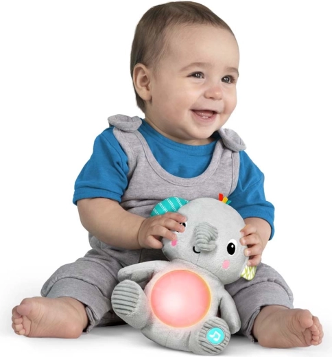 Pluszowy słonik Hug‑a‑Bye Baby to miękki przytulak i jednocześnie interaktywna zabawka do spokojnego zasypiania i odkrywania świata. Delikatne światło w brzuszku tworzy kojącą poświatę, która towarzyszy przyjemnym melodiom – idealnie do łóżeczka, wózka i w podróży.