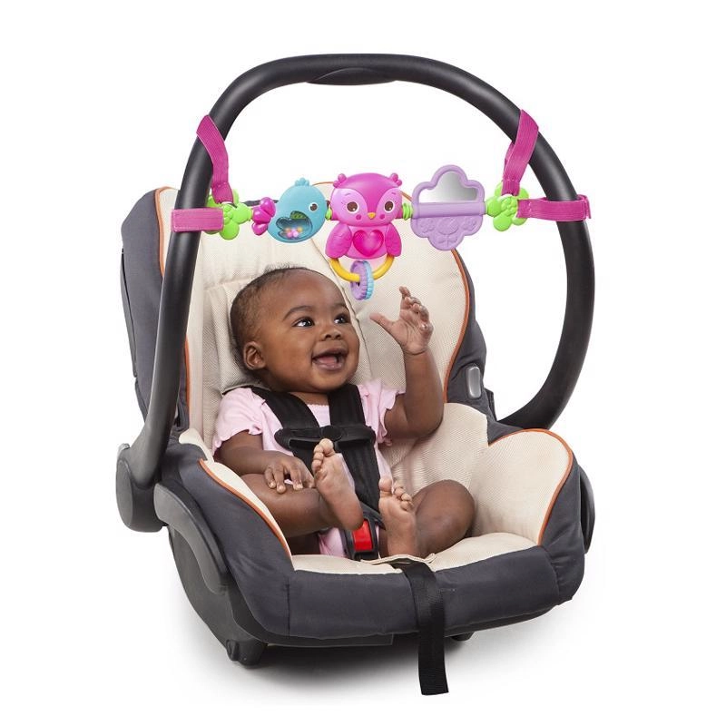 Zintegrowana sówka delikatnie świeci i odtwarza cztery wesołe melodie, które zainteresują i uspokoją maluszka podczas jazdy.