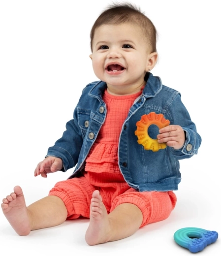 Urocze gryzaki w kształcie słoneczka i tęczy zapewniają maluszkom komfort podczas wyrzynania się pierwszych ząbków. Miękki, ale wytrzymały silikon oferuje różne tekstury — od delikatnych wypustek po żebrowanie — które skutecznie masują obolałe dziąsła, a jednocześnie angażują zmysły dziecka.