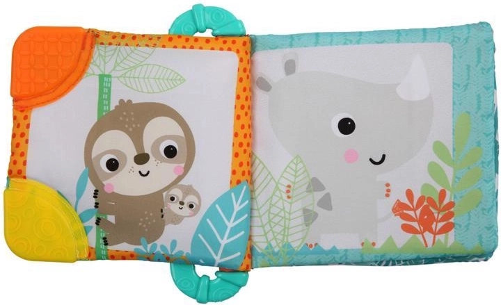 Miękka aktywizująca książeczka BRIGHT STARTS łączy zabawę z praktyczną ulgą podczas ząbkowania. Kolorowe ilustracje zwierzątek oraz szeleszczące i skrzypiące strony stymulują wzrok i słuch, a pętelki z dwiema fakturami delikatnie masują dziąsła. Dzięki lekkiej konstrukcji i elementom do chwytania maluszek z łatwością ją trzyma i odkrywa.