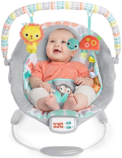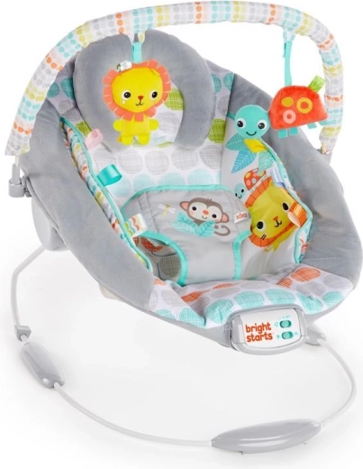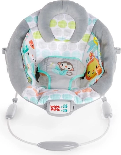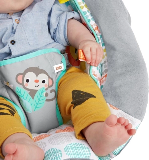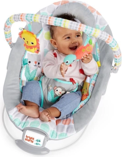 Leżaczek Bright Starts Whimsical Wild został zaprojektowany z myślą o codziennym komforcie i zabawie. Miękkie wyściełanie, odpinany zagłówek oraz zintegrowana wkładka dla noworodka zapewniają dziecku właściwe podparcie. Kojące wibracje i 7 melodii z regulacją głośności pomagają wyciszyć i uśpić, a 15‑minutowy timer oszczędza baterie.