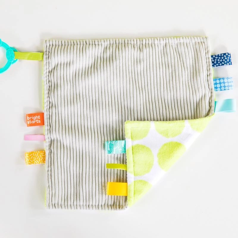 Przytulny kocyk Bright Starts Little Taggies z motywem zielonych kropek to mięciutki towarzysz dla maluszków od urodzenia. Dzięki delikatnym teksturom i lekkiej konstrukcji ułatwiającej chwytanie uspokaja i wspiera rozwój zmysłów. Praktyczny pierścień C do przypięcia do wózka lub nosidełka sprawia, że ulubiony przytulak jest zawsze pod ręką – w domu i w podróży.