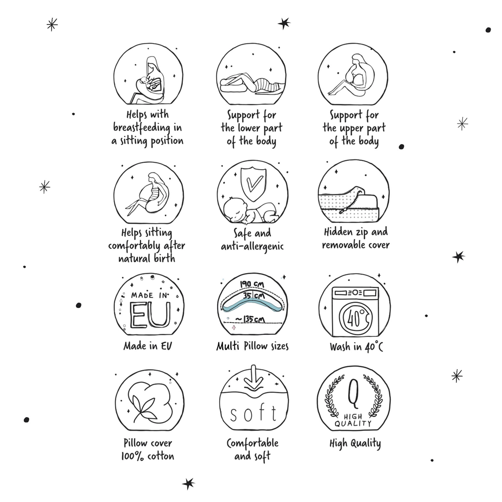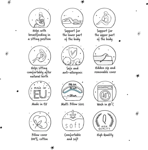 - Wygodne karmienie: stabilne podparcie dla dziecka, ulga dla ramion, barków i pleców.
