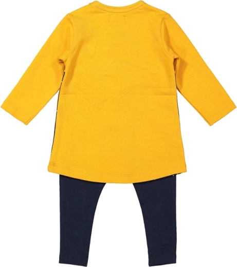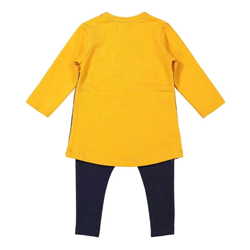Ubierz swoją małą elegantkę w wygodny i wysokiej jakości komplet, który świetnie trzyma kształt i jest przyjemny dla delikatnej dziecięcej skóry. Zestaw zawiera żółtą sukienkę i elastyczne legginsy, które doskonale do siebie pasują i ułatwiają codzienne ubieranie.
