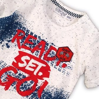 Dzięki uniwersalnemu białemu kolorowi i zabawnemu nadrukowi „Ready Set Go!” koszulka doskonale pasuje do dżinsów, legginsów i szortów. Praktyczny element do przedszkola, na plac zabaw i czas wolny.