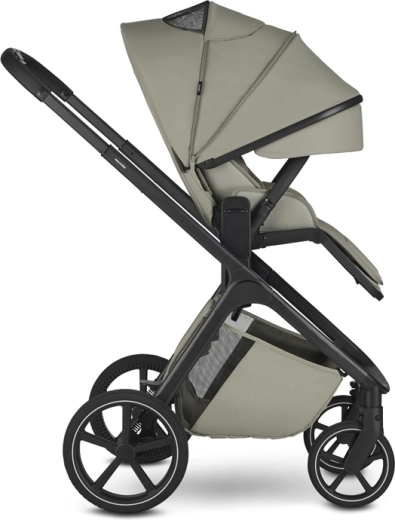 Siedzisko spacerowe oferuje trzy pozycje odchylenia i można je łatwo obrócić przodem lub tyłem do kierunku jazdy. Gondola wyróżnia się wysokiej jakości materacem, rozwiązaniem antyrefluksowym oraz wentylacją w budce i spodzie dla przyjemnego klimatu. Do tego pojemny kosz (do 7 kg) i regulowana rączka dla komfortowego prowadzenia.