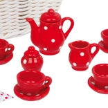 Piknikowy kosz dla dzieci z czerwonym zestawem herbacianym