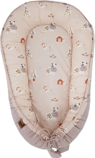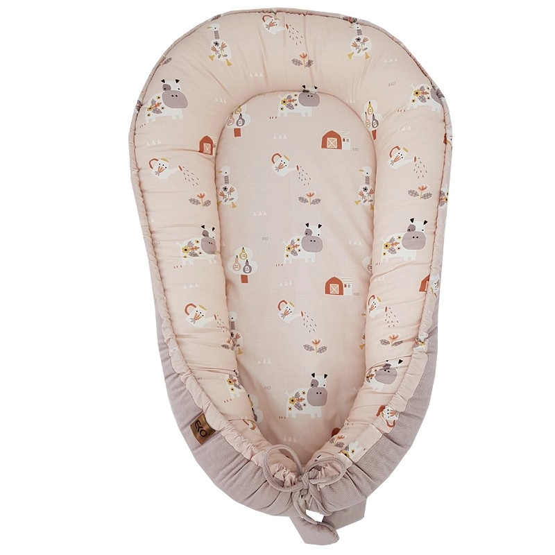 Zapewnij maluszkowi przytulne miejsce w domu i w podróży. Gniazdko EKO Velvet My Farm w pudrowym różu łączy miękką powierzchnię VELVET z oddychającą bawełną. Wysokie, miękko wyściełane brzegi tworzą bezpieczną przestrzeń, która pomaga dziecku czuć się spokojnie i komfortowo.