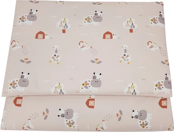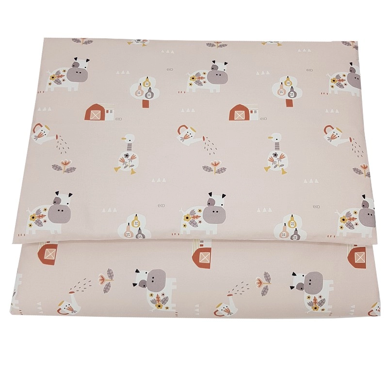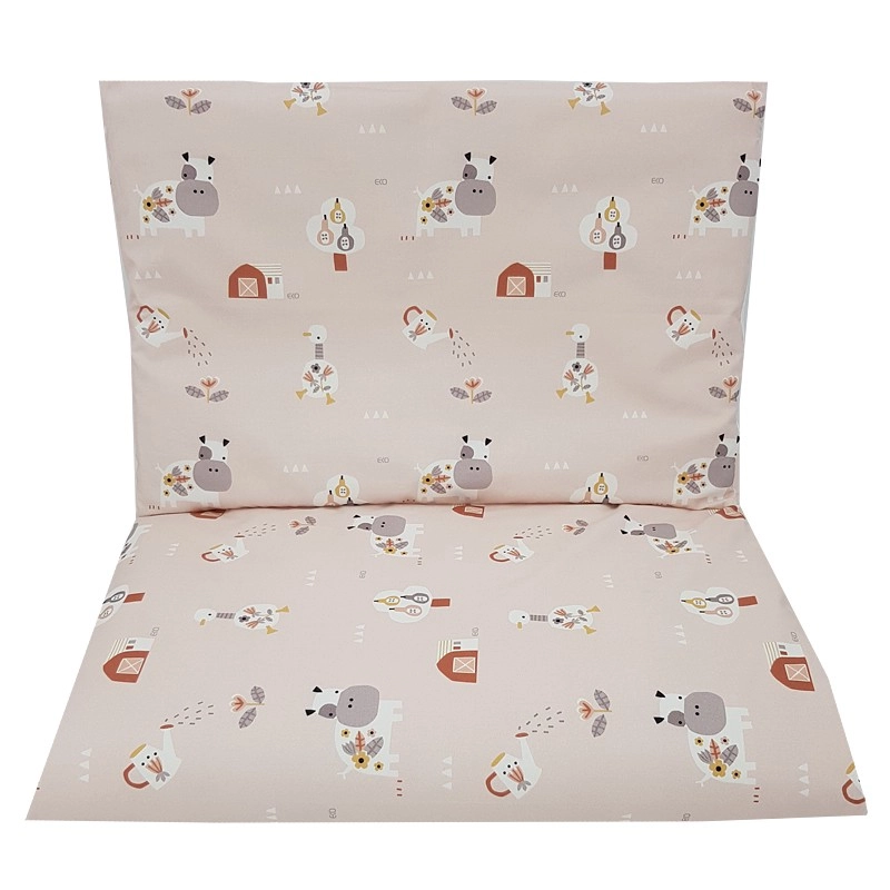 Ten 2‑częściowy zestaw pościeli z wysokogatunkowej bawełny jest idealny do dziecięcego łóżeczka. Delikatny wzór My Farm w pudrowo różowym odcieniu oraz staranne szycie gwarantują wygodę i długą żywotność. Naturalny materiał jest oddychający, łagodny dla wrażliwej dziecięcej skóry i łatwy w pielęgnacji.