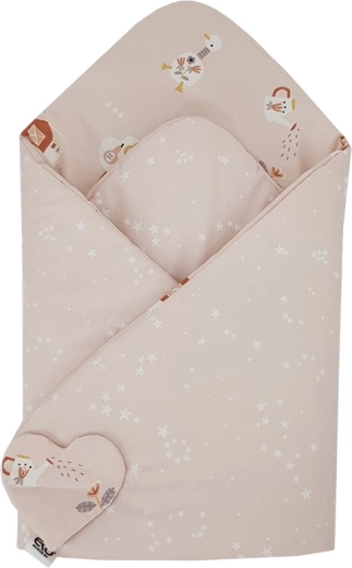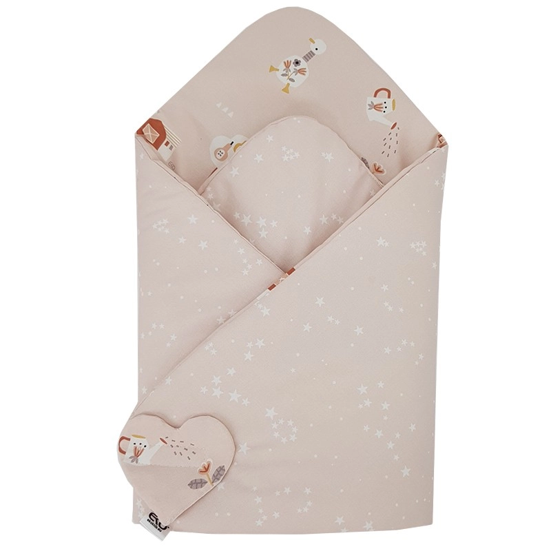 Mięciutki dwustronny rożek z wysokiej jakości bawełny z uroczym motywem My Farm zapewni maluszkowi wygodę, ciepło i bezpieczne otulenie już od pierwszych dni. Wypełnienie z hipoalergicznego oddychającego włókna delikatnie grzeje, a zapięcie na rzep ułatwia szybkie i pewne otulenie.