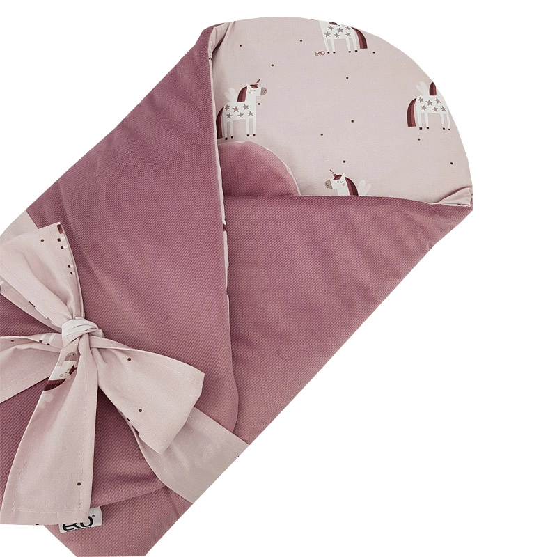 Ten premiumowy rożek EKO został zaprojektowany do bezpiecznego i wygodnego otulania noworodka. Zewnętrzna strona z miękkiego welwetu jest przyjemna w dotyku, a wewnętrzna podszewka z wysokiej jakości bawełny z nadrukiem cyfrowym jest oddychająca i delikatna dla wrażliwej skóry. Zintegrowana, lecz łatwo wyjmowana wkładka kokosowa pomaga rodzicom w pewniejszym trzymaniu maluszka i nadaje rożkowi kształt.