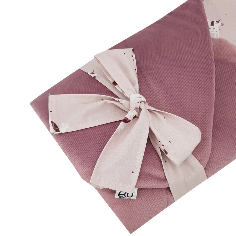 Praktyczna kokarda pozwala łatwo dopasować otulenie i zapewnić dziecku wygodne oraz bezpieczne zawinięcie.